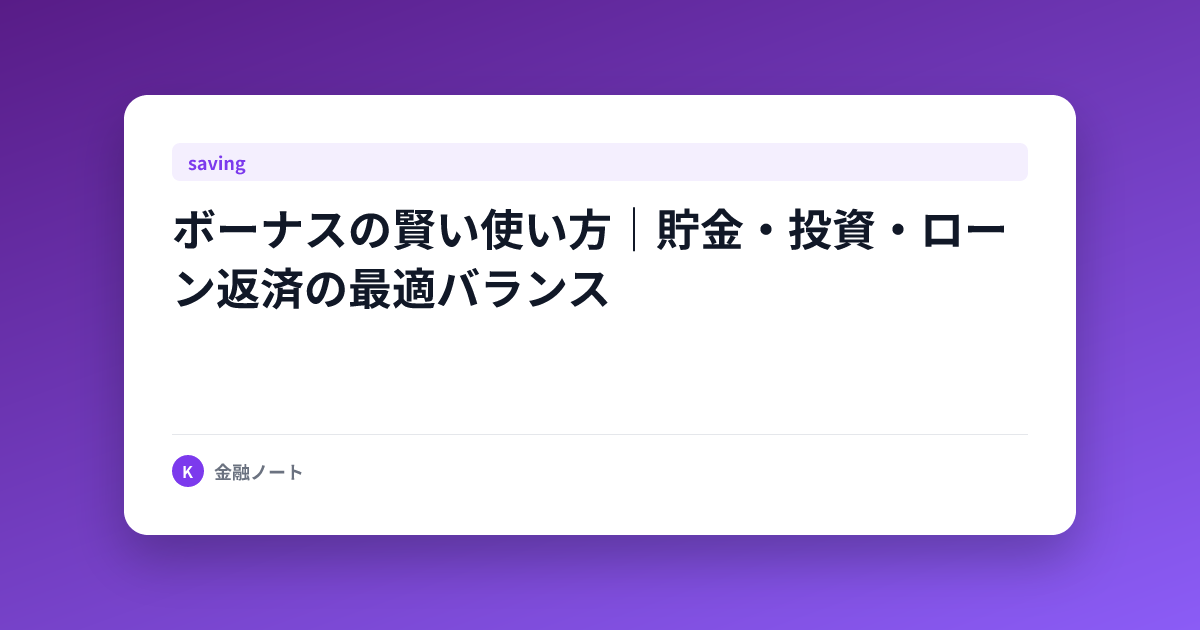 ボーナスの賢い使い方|貯金・投資・ローン返済の最適バランス